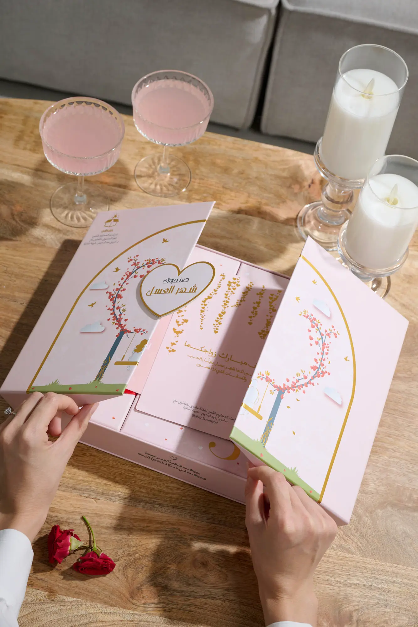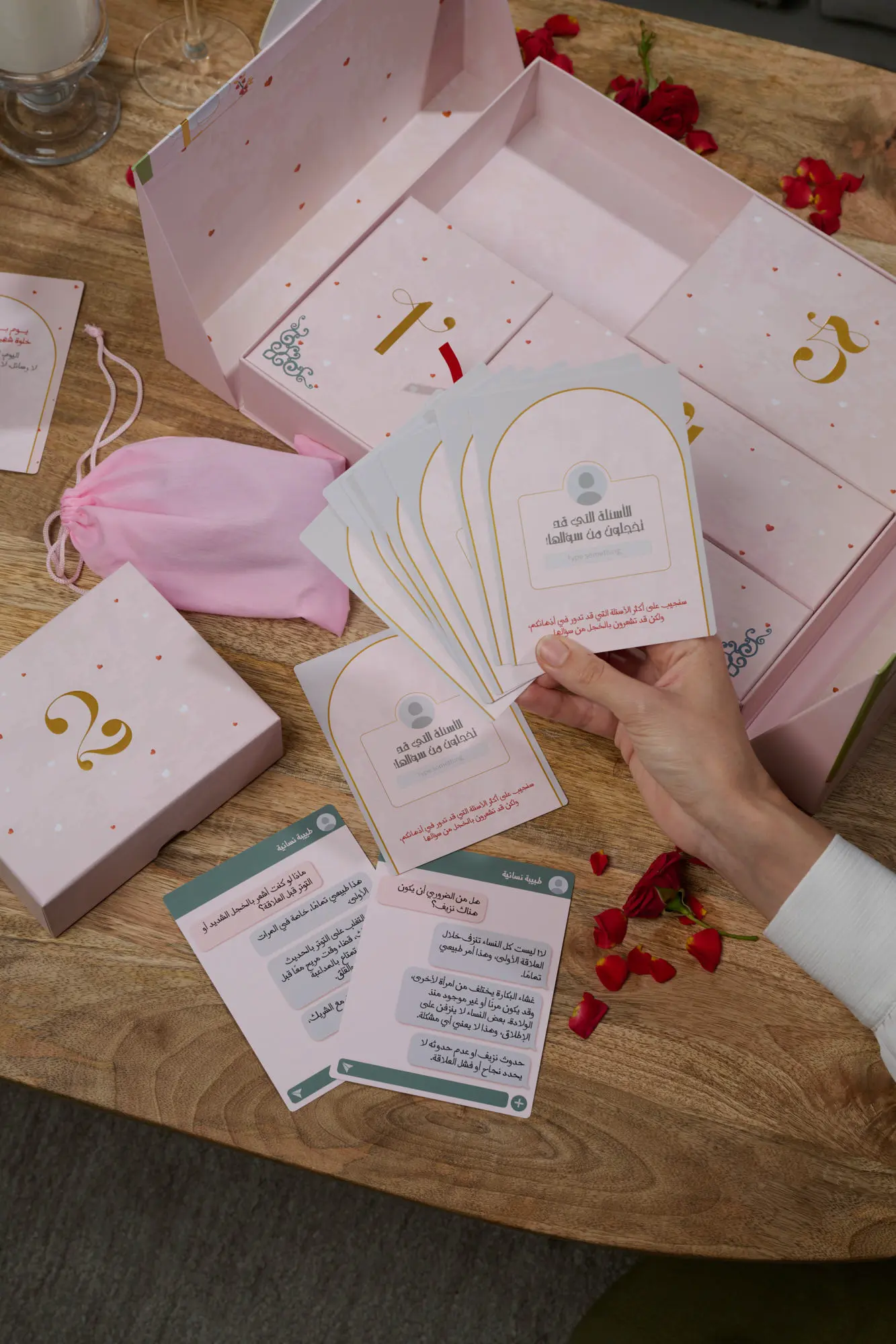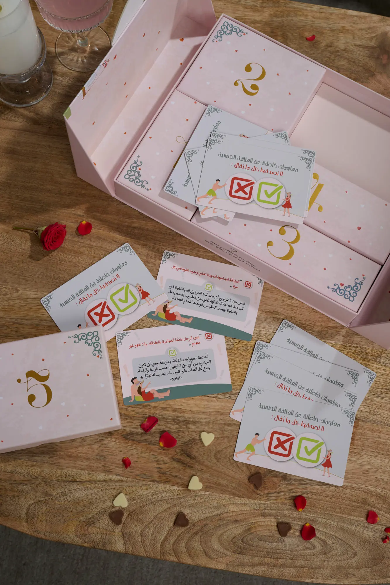 ابدؤوا رحلتكما الزوجية بطريقة مختلفة تجمع بين المتعة والمعرفة، مع أول صندوق عربي من نوعه صُمم خصيصًا لمرافقة العروسين في أيامهم الأولى بعد الزواج. عن طريق فعاليات مصممة بمرافقة طبيبة نسائية مختصة.
