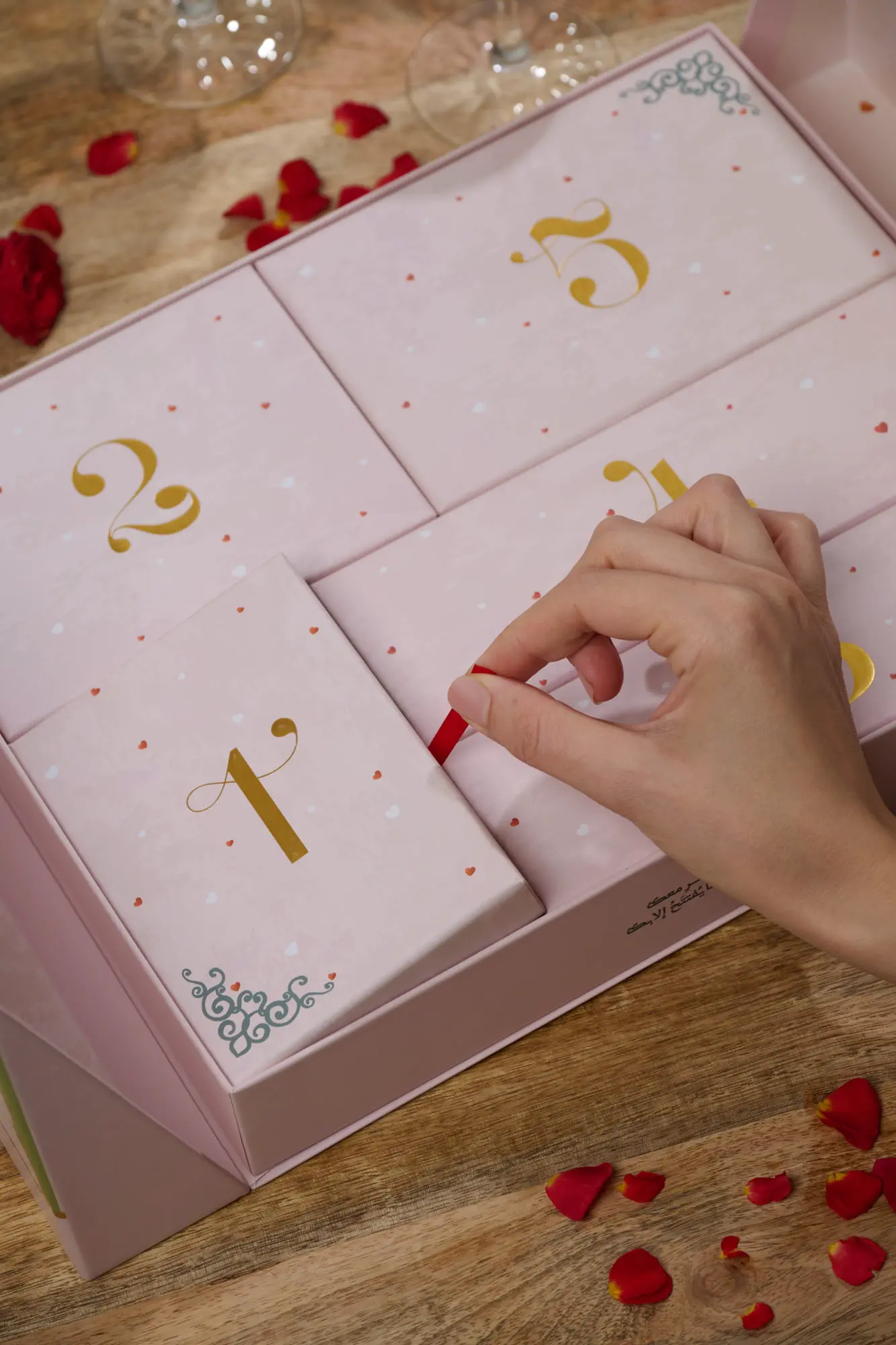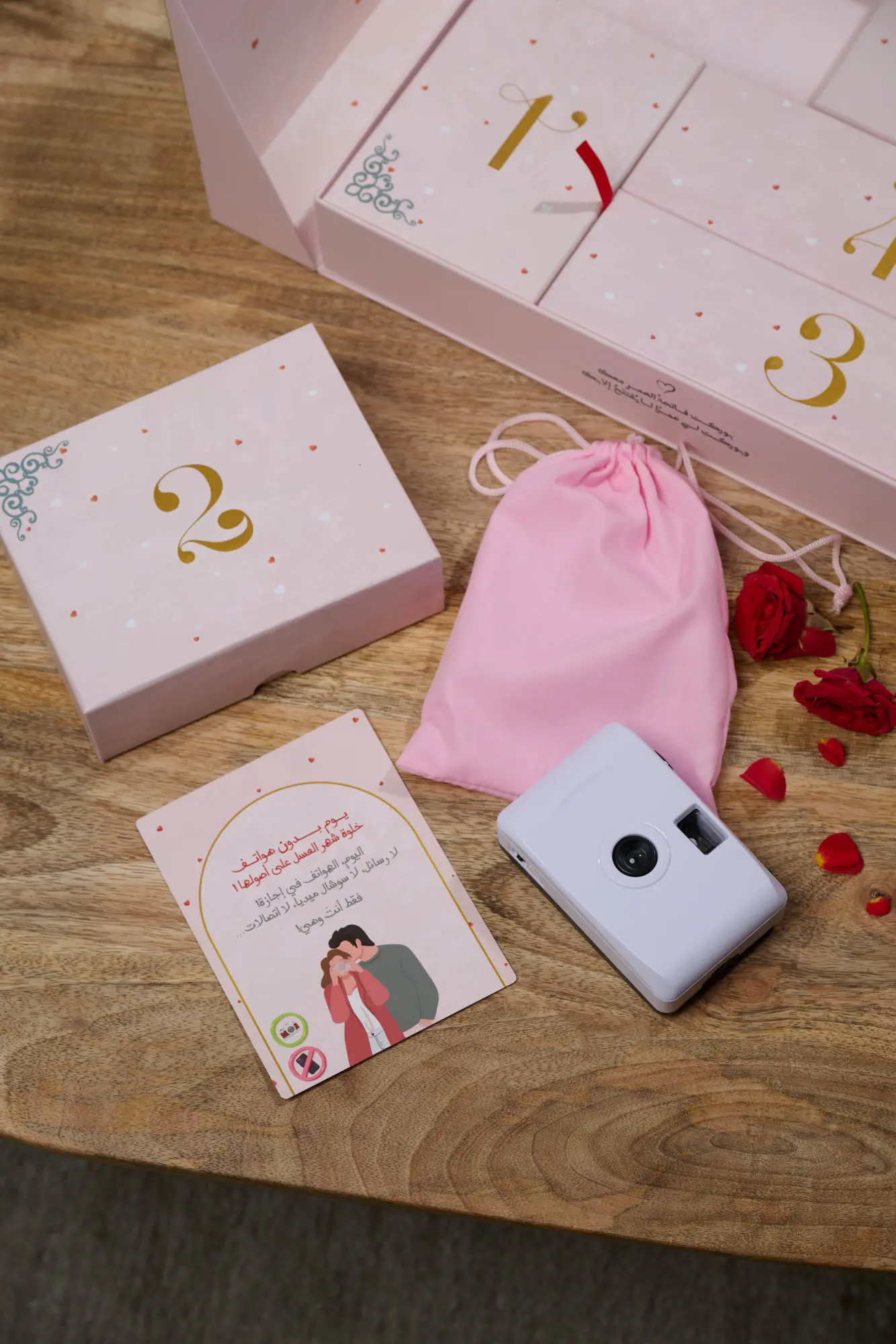 يحتوي على 5 أقسام لـ 5 أيام – في كل قسم يوجد عدة فعاليات تساعدكما على كسر الجليد والتقارب بحميمية وبوتيرة صحية، آمنة وممتعة للعريس والعروس بنفس الوقت.