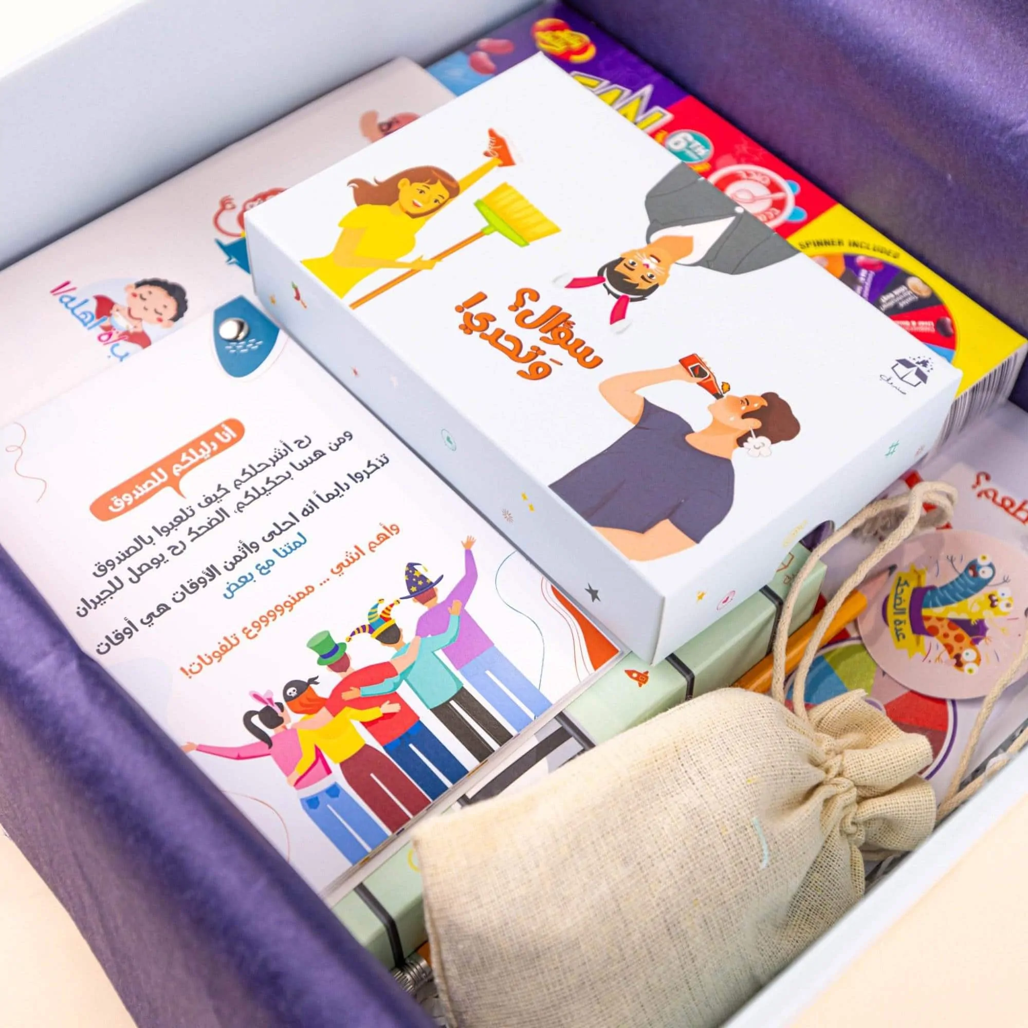 ابعدوا عن الشاشات وتقربوا من بعضكم! في عالمنا العصري، صار من المهم أكثر من أي وقت مضى أن نخصص وقتًا للتواصل الحقيقي مع أحبائنا كما في أيام زمان. صندوق لمتنا هو وسيلة ممتعة وفعالة لتحقيق هذا الهدف وتعزيز الروابط العائلية والاجتماعية من خلال ألعاب وفعاليات صُممت بعناية. استثمروا في علاقاتكم. |